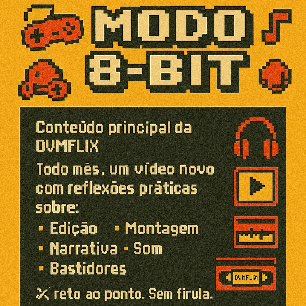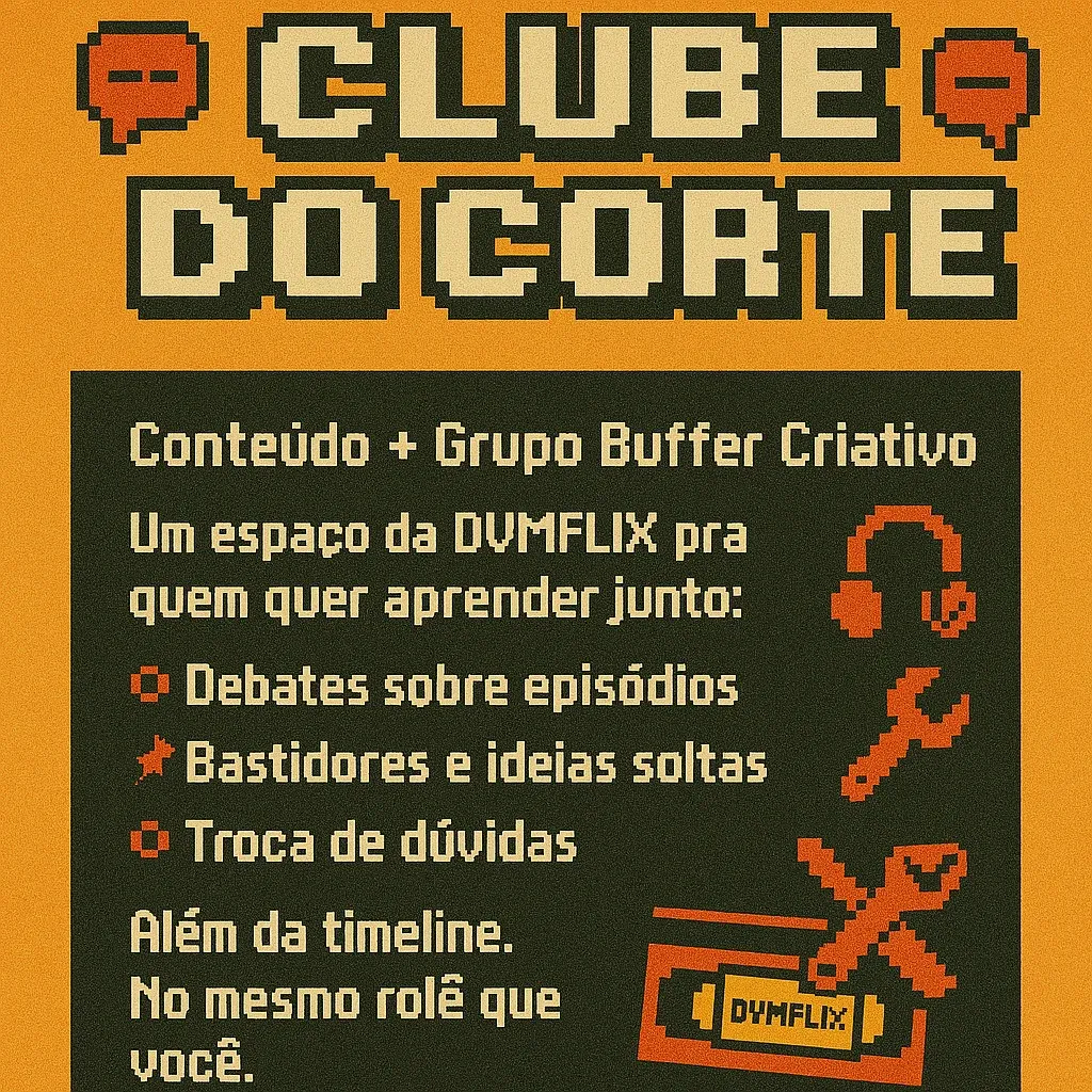 No DVMFlix, além das aulas de mixagem e recursos de áudio, você aprenderá sobre transições, construção de narrativa, como identificar e seguir a intuição do filme, e muito mais. É um espaço para explorar as técnicas mais avançadas de edição, sempre com exemplos práticos e dicas que você pode aplicar nos seus próprios projetos.