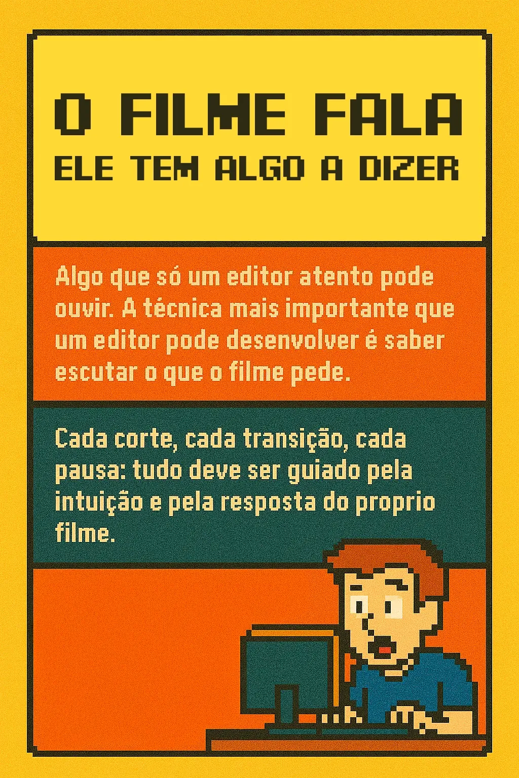 Quando essa conexão é feita, a edição se transforma em uma jornada, que prende o espectador do começo ao fim.